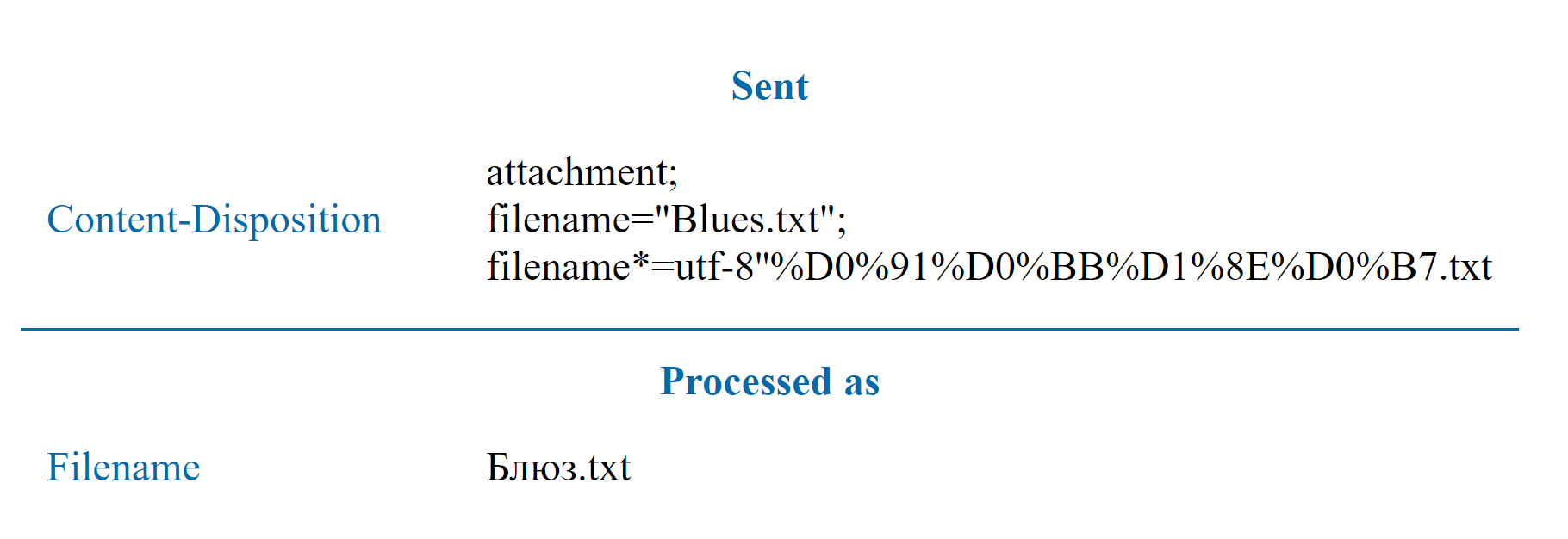 HTTP 1.1 is a well-known hypertext protocol for data transfer. HTTP messages are encoded with ISO-8859-1 (which can be nominally considered as an enhanced ASCII version, containing umlauts, diacritic and other characters of West European languages). At the same time, the message body can use another encoding assigned in "Content-Type" header. But what shall we do if we need to assign non-ASCII characters not in the message bodies, but in the header? Probably the most well-known case is setting a filename in "Content-Disposition" header. It seems quite a common task, but its implementation isn’t obvious.