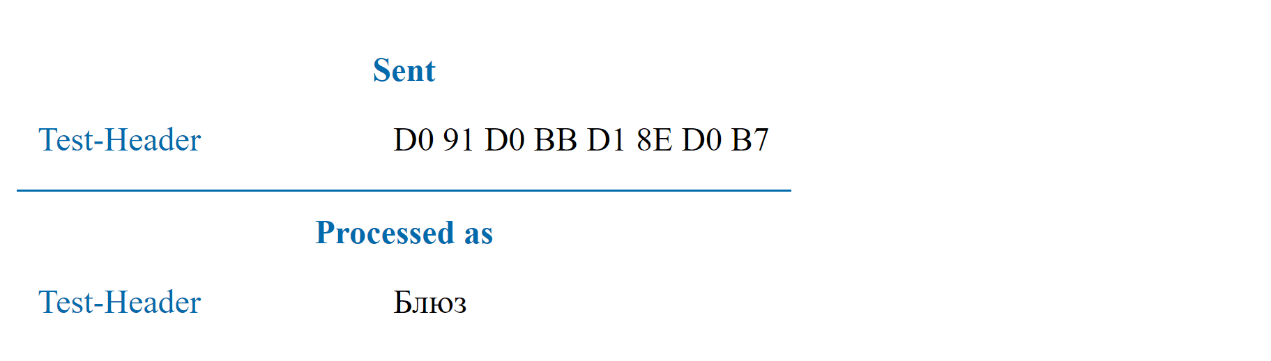 What if we just write a UTF-8 value into a header? We saw that with such a trick, applied to a message body, the value will be read in ISO-8859-1. Therefore, we can assume that the same will happen to a header. But no, it won’t. In fact, for most, maybe even for all, cases such a solution will work out. Such cases include old iPhones, IE11, Firefox, Google Chrome. The only browser refusing to read such a header, of all the browsers I had when writing this article, was Edge.