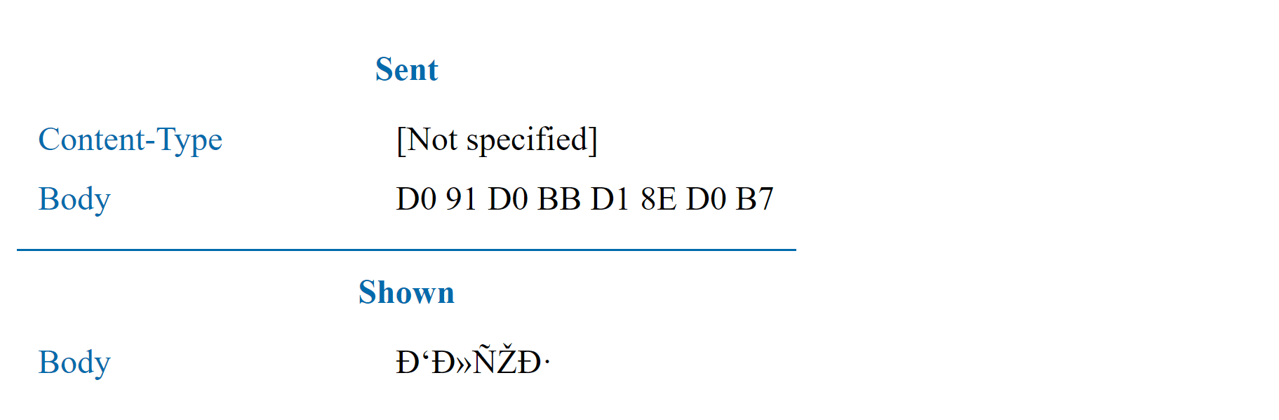 Before we proceed to headers, let’s see how UTF-8 is used in message bodies. For that purpose we use "Content-Type" header.