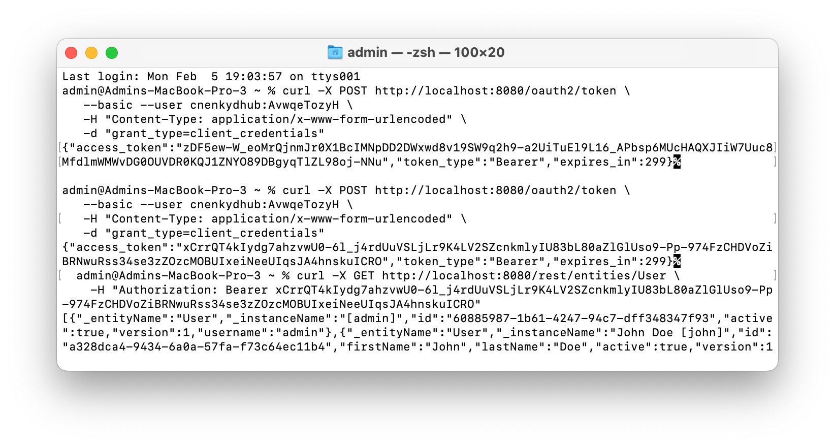 As we can see in the screenshot above, we’re obtaining an access token and using it to get access to protected resources within our application. All we needed to do is define the roles that should be assigned to the access token in the properties file.