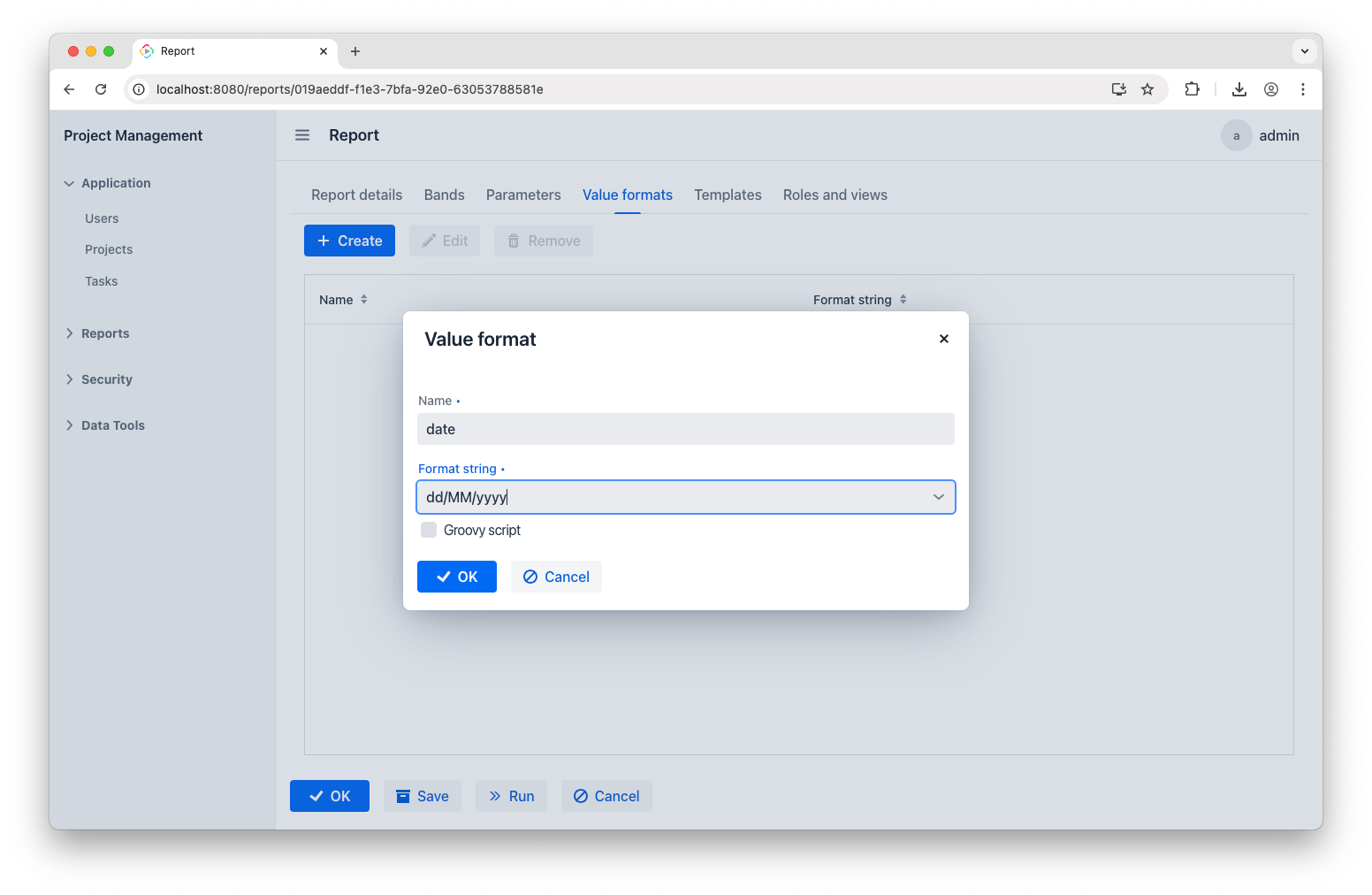 To make those fixes, let’s get back to the report and open the Value formats tab. To address the date format issue, add the following entry: