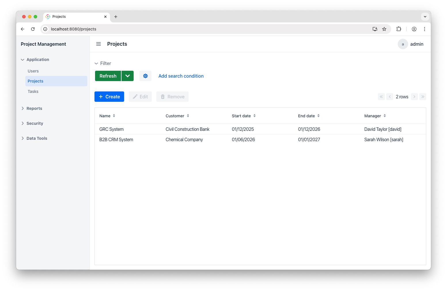 Robust reporting is a baseline requirement for most business applications. Companies expect outputs in HTML, DOCX, PDF, or XLSX, complete with data tables and visuals. Creating that kind of functionality – especially if you want it to be end-user configurable – is a heavy lift, but Jmix can handle it for you.