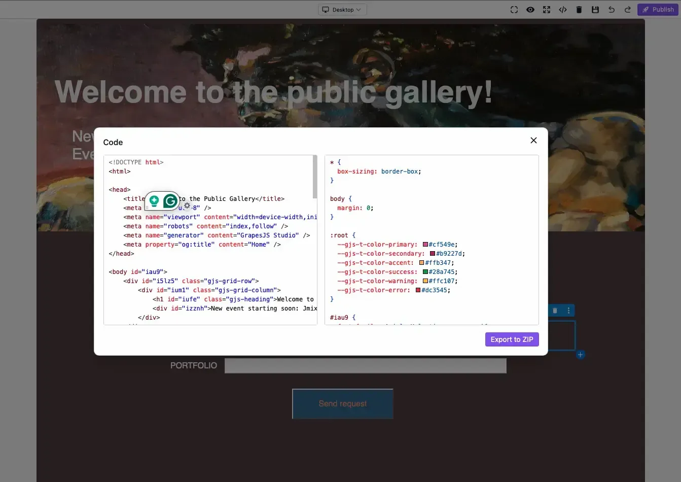 Let’s begin with creating a public-facing part of the service. GrapesJS is a fantastic tool for creating visually appealing layouts without going deep into HTML and CSS.