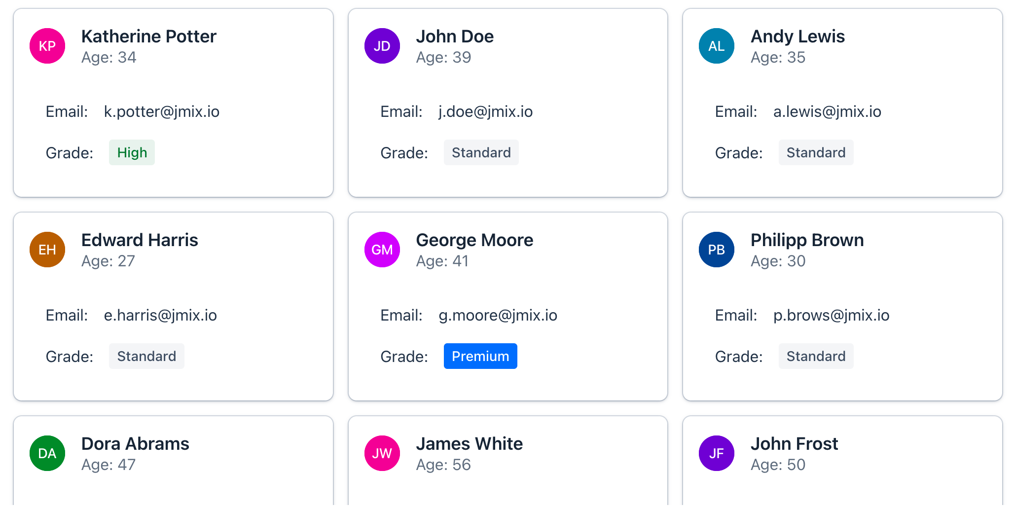 Arrange components, cards, or fragments in a responsive two-dimensional grid with the gridLayout. Powered by CSS Grid Layout, it provides a flexible alternative to traditional data grids for complex, structured UIs that adapt seamlessly to different screen sizes. Plus, you can connect the gridLayout to a collection data container to render dynamic data sets.