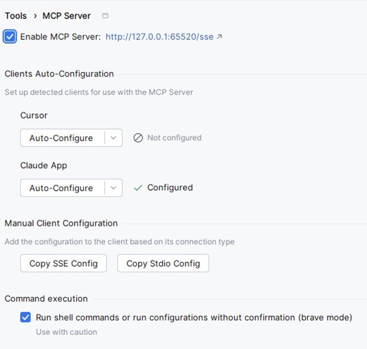 - File → Settings → Tools → MCP Servers