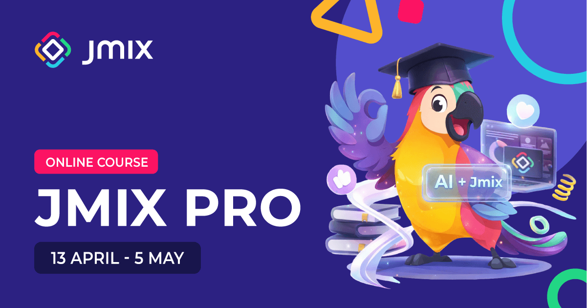 We’re launching a new edition of our online course, now expanded to 42 hours. The course also covers how to use the Jmix AI Assistant to speed up development by reducing routine work and helping you move faster when working with the framework.