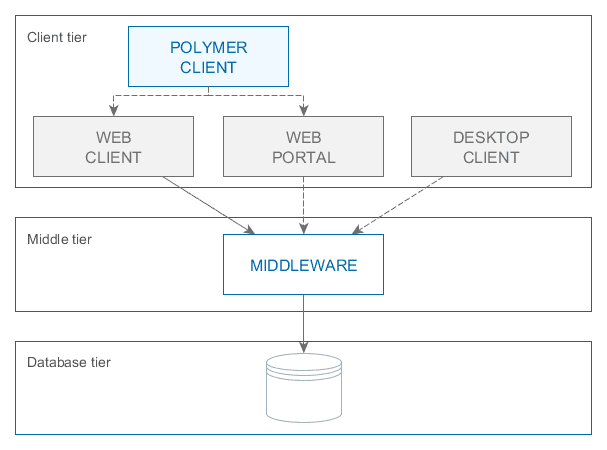Applications developed using the CUBA Platform occupy three tiers as shown in Figure 7, they are, the database tier, the middle tier and the client tier. These tiers are connected using REST and HTTP APIs.