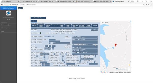 A composite application (also known as a “Mashup”) is a Web site component or application displaying mixed content combined from heterogeneous sources. End-users don’t have to know from which underlying sources and applications this aggregated information is coming. In its simplest implementation, adding relatively simple external enhancements to a legacy user interface such as dropdowns or type-ahead search can greatly enhance the user experience with the application. These two features require database access that is separate from the original application and they can be implemented without modifying the original application. Figure 4 shows how what the user sees on their desktop is a further composite of the original application screen and a Google Map which is made available through a REST API and the CUBA-Platform. This too does not require a modification of the original application.