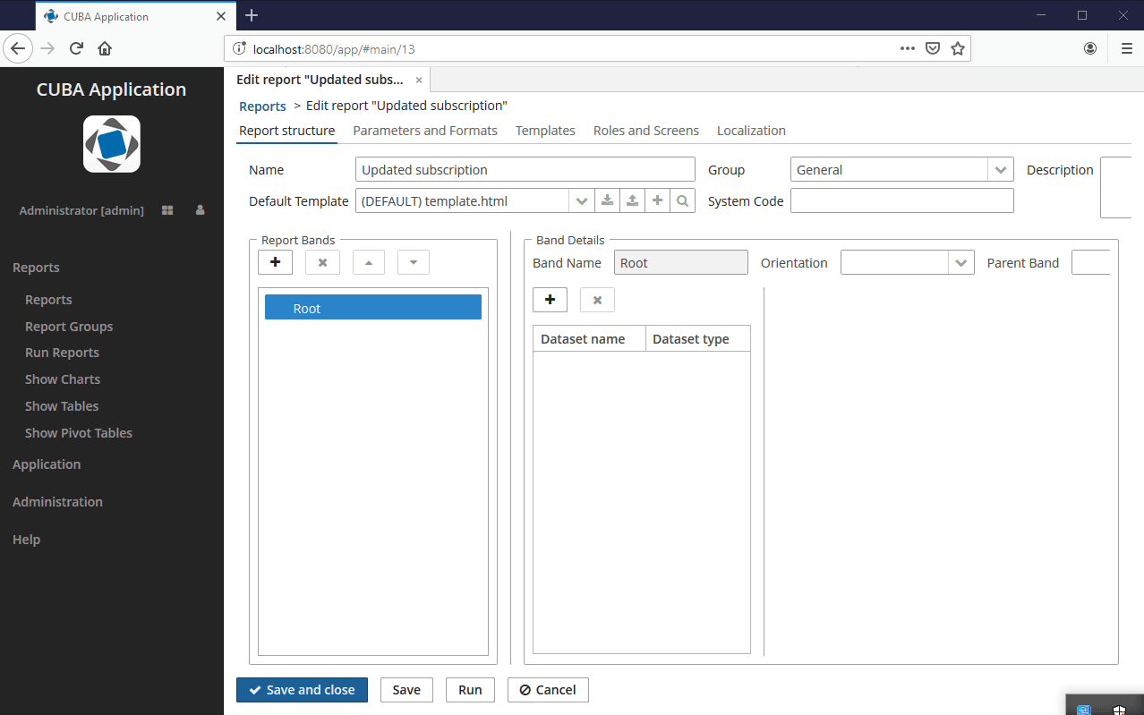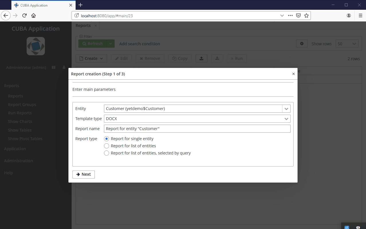 Reporting is based on the YARG framework and designed to simplify the reports generation in CUBA applications.