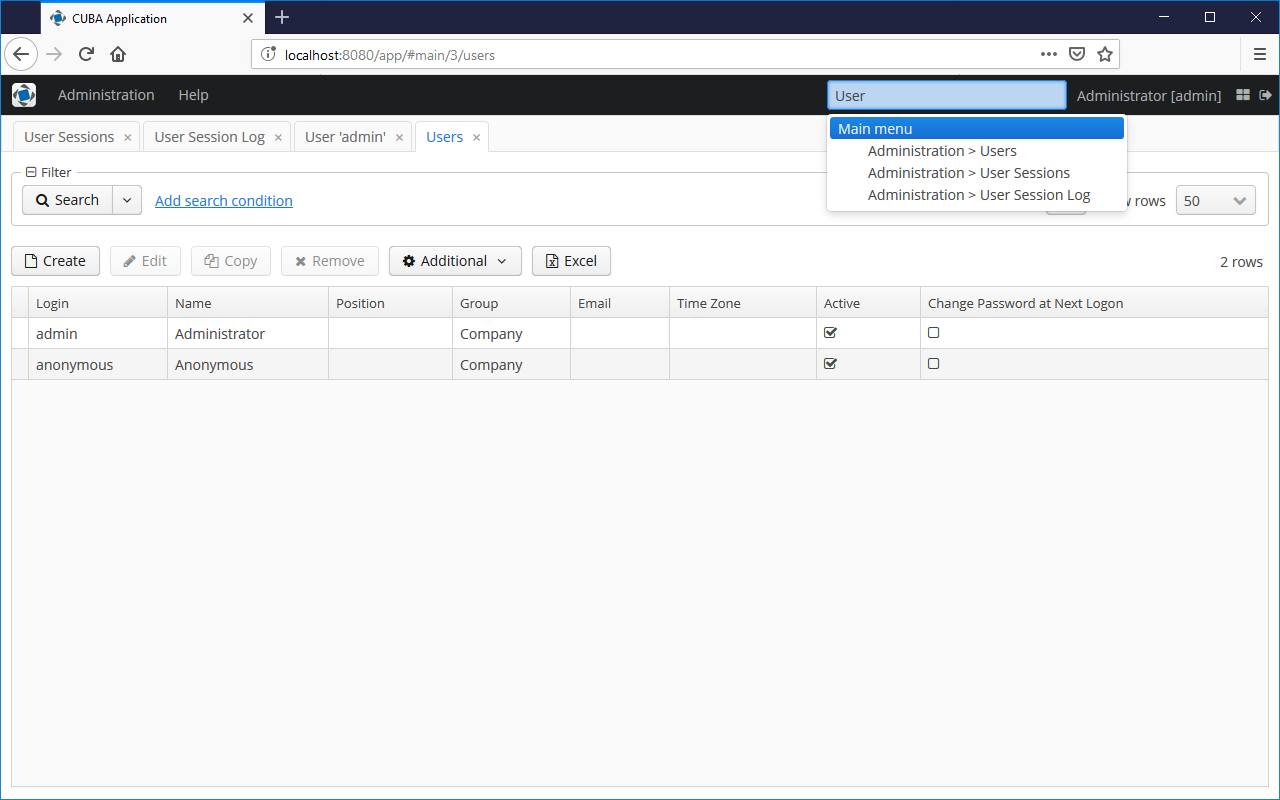 The add-on is designed to search for various types of objects using a single field. This out-of-the-box solution enables searching by application menu items.