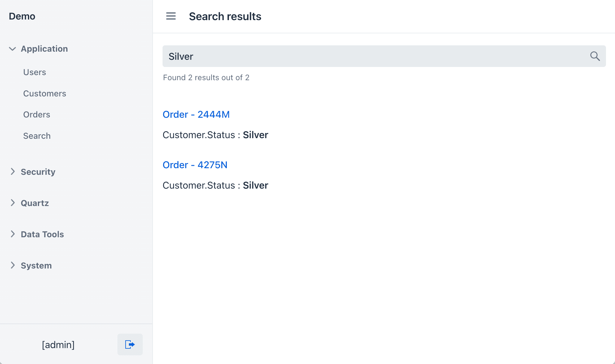 The Jmix Search add-on provides an out-of-the-box solution for indexing and searching entities and uploaded files within your application. Built on Elasticsearch/OpenSearch, it allows developers to define indexes for their data models, automatically reindex modified data, and apply security policies to search results.
